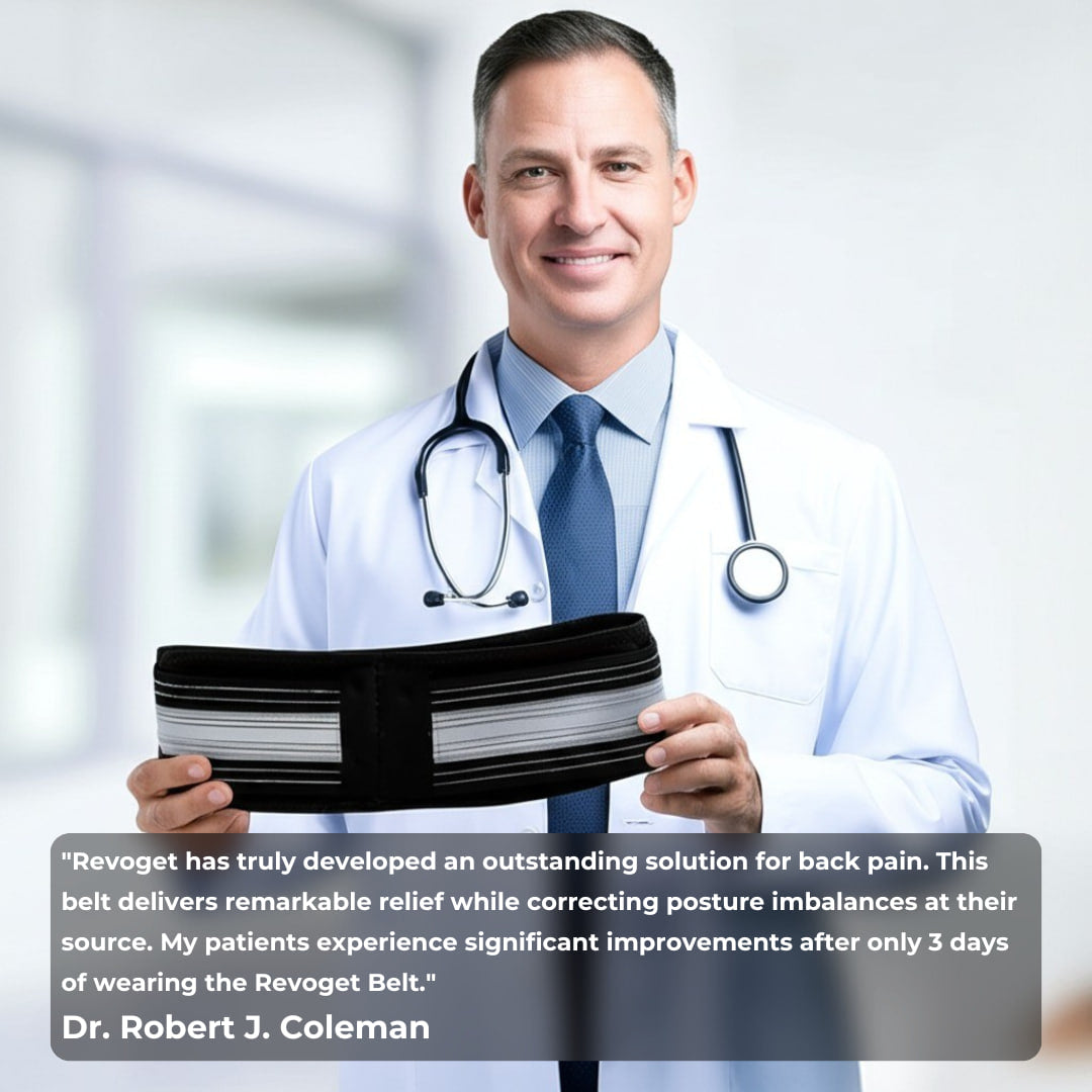 The innovative Revoget™ Belt has been thoroughly tested and endorsed by leading orthopedic specialists, spine surgeons, and physical therapists, as well as their patients.
